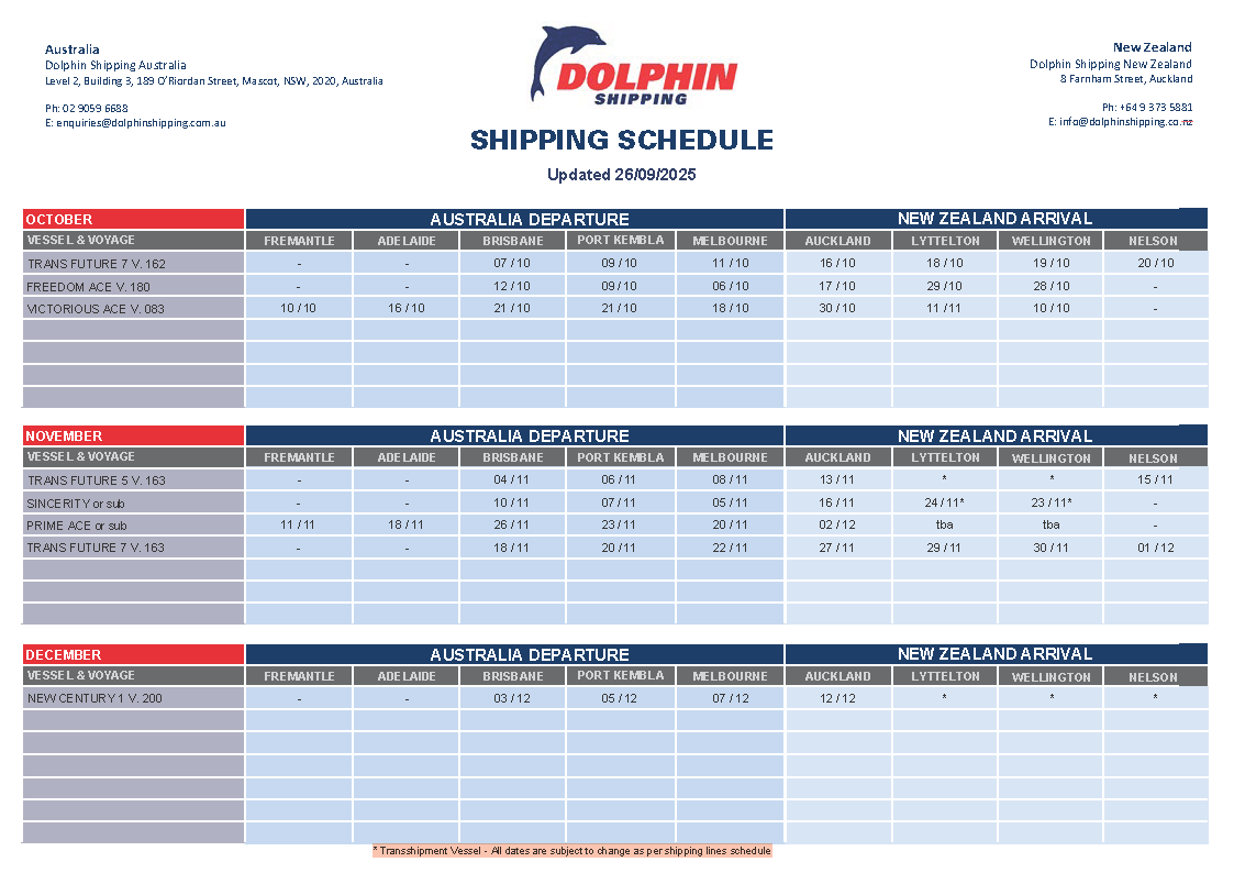 Fill in the form to book a vehicle transport from ports in Australia to ports in New Zealand The transport size is 18m3′.